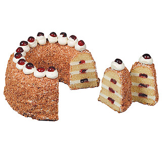 ergibt 16-20 Portionen Für die Zubereitung der ringförmigen Buttercremetorte werden ausgewählte Zutaten zu einem feinen, runden Sandkuchen verarbeitet. Gefüllt mit vier Fruchtfüllungen und Buttercreme ist der Kranz ein echtes Geschmackserlebnis. Garniert mit Haselnusskrokant sowie mit kleinen Creme-Häubchen und Kirschen macht der Sandkuchen auf jedem Kuchenbuffet etwas her. Vorteile: - Ansprechende Optik - Schnell & einfach im Handling