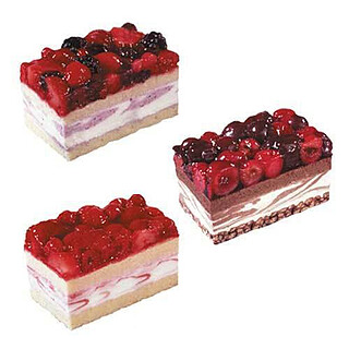 Platte vorgeschnitten in 12 Portionen. Sahneschnitten-Mischkarton in den drei köstlichen Sorten: - Beerenfrucht-Buttermilch-Schnitte (1) - Kirsch-Schoko-Crisp-Schnitte (2) - Erdbeer-Himbeer-Joghurt-Schnitte (3) Saftige Beeren, luftige Biskuitteige und feine Fruchtsahnecremes machen diese Mischkiste zu einem Must-have bei jedem Kuchenbuffet. Die trendigen Schnitten sind die ideale Ergänzung zu klassischen Sahnetorten. Vorteile: - Drei fruchtige Sorten in einem Karton - Ideal fürs Buffet - Bedarfsgerecht entnehmbar