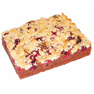 Saftiger, dunkler Rührteigkuchen mit Kakao und Kirschen. Mit Streuseln abgerundet.