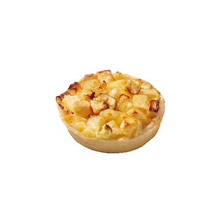 Klassischer Apfelkuchen nach französischer Art im Mini-Format. Der knusprige Mürbeteigboden wird mit saftigen Apfelwürfeln sowie einer feinen Cremeschicht verfeinert und ist damit der perfekte süße Abschluss Ihres Menüs oder Kaffee-Begleiter. Dank einer Extraportion Äpfel schmeckt das beliebte Dessert besonders gut. Vorteile: - Beliebt als Dessert - Auch als Mono-Portion geeignet - Extra hoher Fruchtanteil