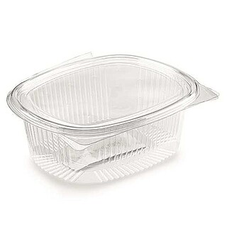 Ovale, klarsichtige Feinkostschale mit praktischem anhängendem Deckel. Für viele Einsatzzewcke verendbar.